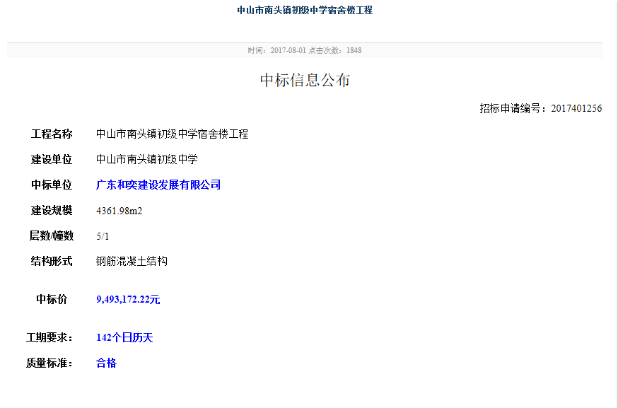 祝賀我司參與“中山市南頭鎮(zhèn)初級中學宿舍樓工程 ”項目成功中標…
